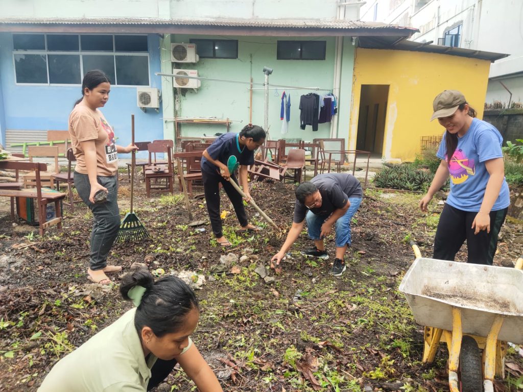 Tanjung Balai Karimun, SMA SANTO YUSUP – Suasana penuh keakraban mewarnai halaman belakang SMA Santo Yusup pada Sabtu (30/08). Guru dan karyawan bergandeng tangan, membersihkan lingkungan sekolah, lalu bersama-sama menanam jagung sebagai simbol kebersamaan.